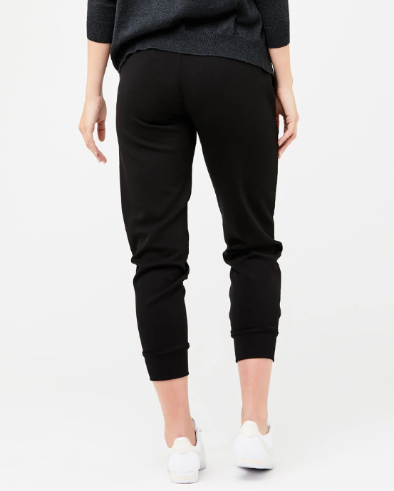 This Scuba Jogger Pant in Black is sure to be a maternity essential for your pregnancy wardrobe. These slim fit pants made of stretch soft touch scuba double knit feel luxurious to wear. It’s elastic waistband with drawstring also makes growing and living n these pants super easy and really comfortable.